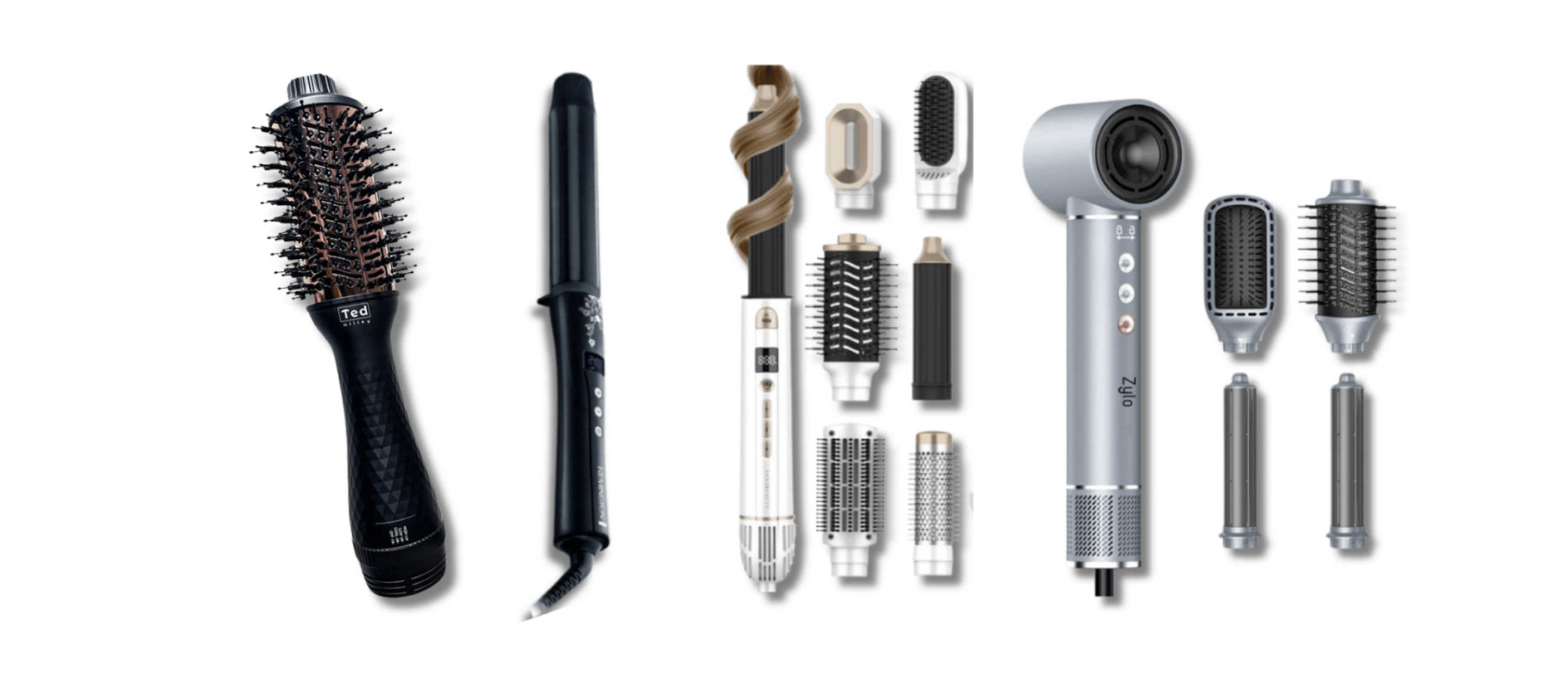 - Vier verschillende opzetstukken maken het mogelijk om verschillende krullen te maken.